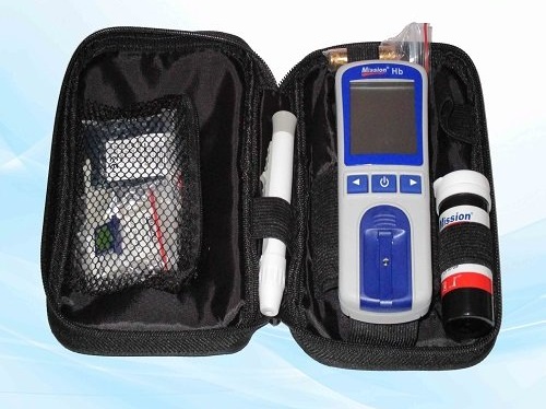Mission® Hb mõõtmisseade on hemoglobiini mõõtmiseks sõrmeotsa verest. Mõõdik loeb tulemused testiriba abil ning kuvab ekraanil hemoglobiini kontsentratsiooni ja hematokriti (Htc) väärtuse %-des.