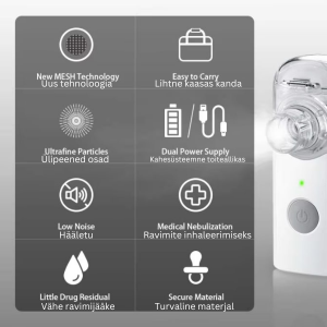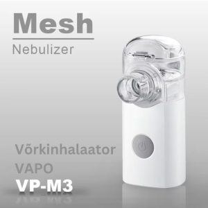 VAPO inhalaatori ostuga kingitusena kaasa termomeeter.  Kingituse väärtus 5,49 eur. VAPO VP-M3 inhalaator on Euroopas üks enimmüüdud võrkinhalaator. Ravimikambri ravimiosakesed on väiksemad kui paljudel teistel võrkinhalaatoritel, mistõttu jõuab ravimi või soolalahuse aur kiiresti ja sügavale hingamisteedesse.Võrkinhalaator Vapo on töökindel ja hääletu inhalaator. Sellel võrkinhalaatoril on ravimikamber U-kujuline, mis võimaldab ravimi maksimaalset inhaleerimist (min jääk). Vapo inhalaator on kasutamiseks sobiv lastele ja täiskasvanutele. Seade kasutab toiteallikana patareisid või USB-kaablit. Võrkinhalaator on nõutuim võrkinhalaator Euroopas. Sa saad kasutada VAPO inhalaatorit kõigil oma pereliikmetel. HEA VIHJE! Kasuta VAPO inhalaatorit ka siis, kui su laps või sa ise olete nohus! Inhalaatorist tulev aur pehmendab ninaeritist ja seda on kergem välja nuusata. Kui hingamine on kergem, magab laps paremini ja ta tuju on parem. VAPO inhalaatori eelised: