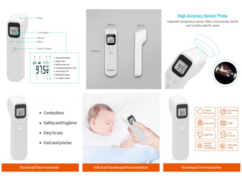 Kontaktivaba termomeeter Landwind mõõdab kehatemperatuuri vaid 1 sekundiga. Kontaktivaba termomeetrit saad kasutada ka toatemperatuuri ning vedelike temperatuuri mõõtmiseks (pudelis olev piim, vannivesi, toidud jne).