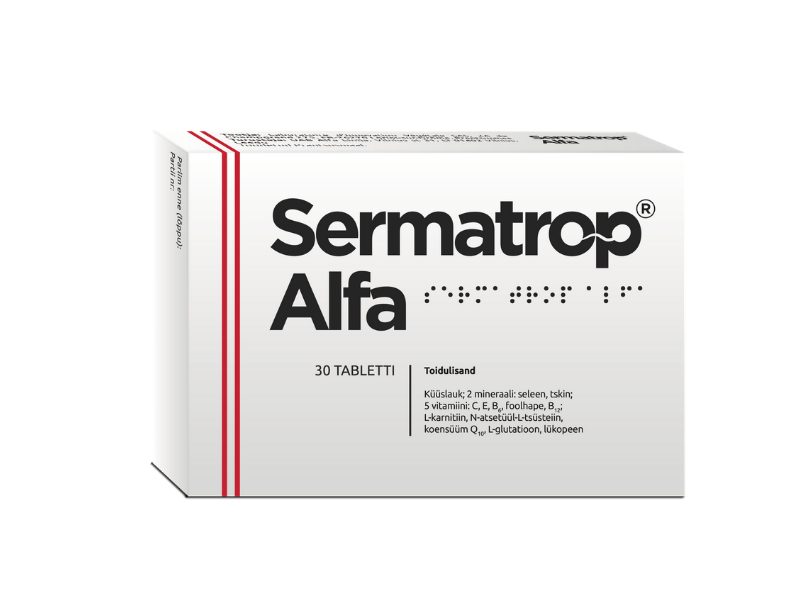 Patenteeritud koostisega Sermatrop Alfa sisaldab mikroelemente, antioksüdante, taimeekstrakte ning aminohappeid.